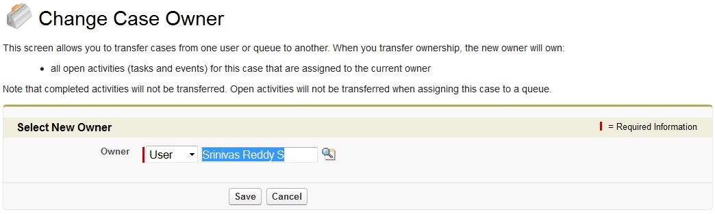 <p>This screen allows you to transfer cases from one user or queue to another. When you transfer ownership, the new owner will own:</p>